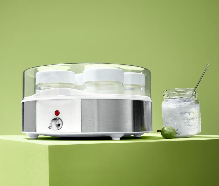 Joghurt passt hervorragend zu frischem Obst oder zu Müsli – und schmeckt selbstgemacht einfach noch besser. Mit dem elektrischen Joghurtbereiter stellt man seinen Naturjoghurt ganz ohne Konservierungsstoffe, Farbstoffe oder künstliche Aromen selbst her. Wenn die Milch optimal temperiert ist, kann man den fertigen Joghurt nach etwa 12 Stunden genießen. Damit man direkt loslegen kann, sind sieben Portionsgläser mit Schraubdeckeln, die je 200 Milliliter fassen, schon mit dabei. Für die einfache Reinigung sind die Gläser samt Deckel spülmaschinengeeignet.