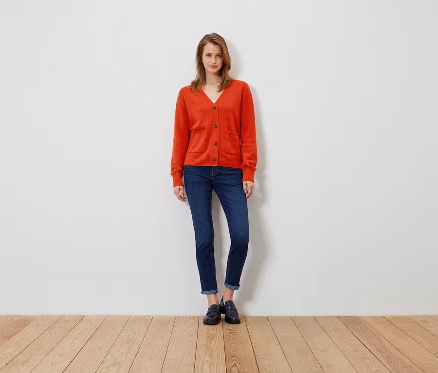 Strickcardigan mit RWS-zertifizierter Wolle, orange