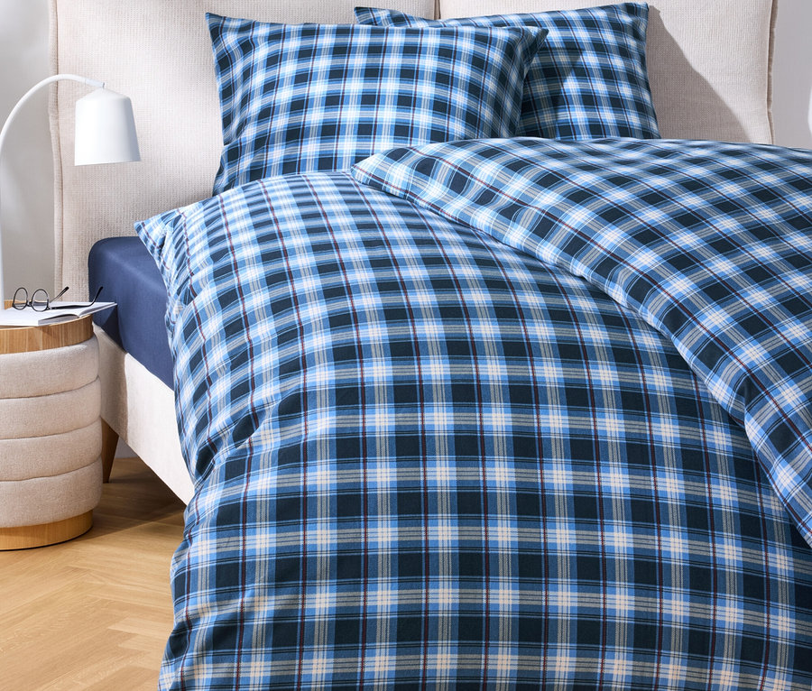 Biber-Bettwäsche, blau kariert, Normalgröße