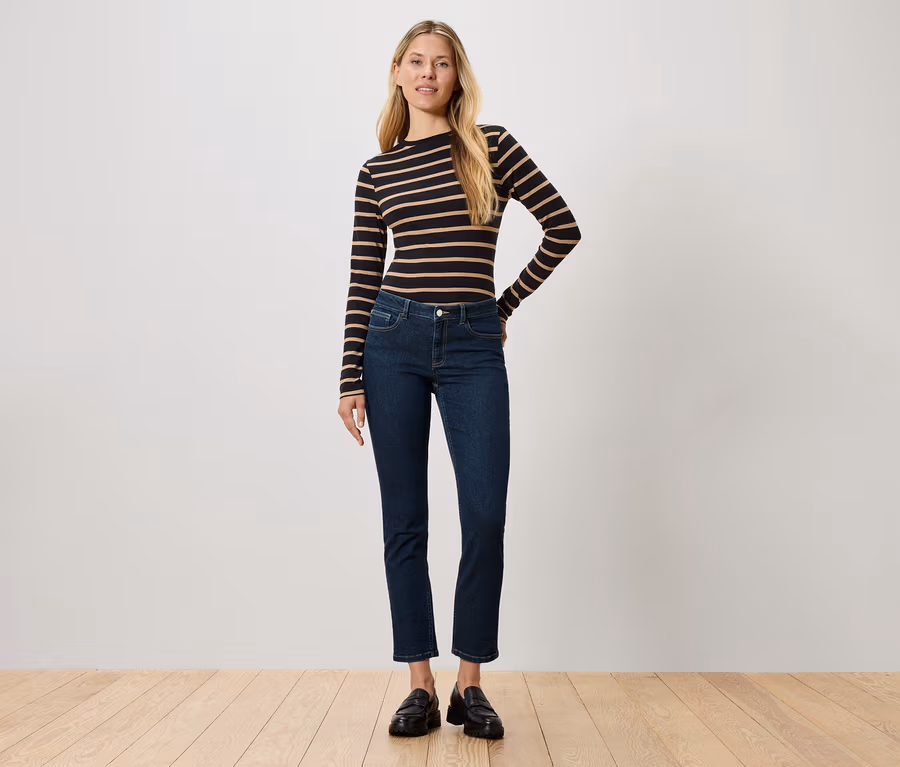 - Regular Fit | Straight Leg | Mid Rise | Ankle Length