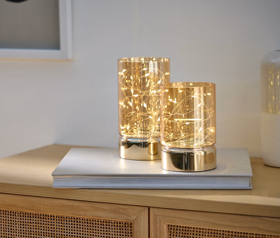 2 LED-Glas-Windlichter