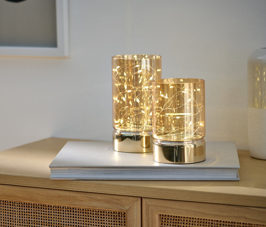 • 2 dekorative, goldfarbene Gläser in verschiedenen Größen