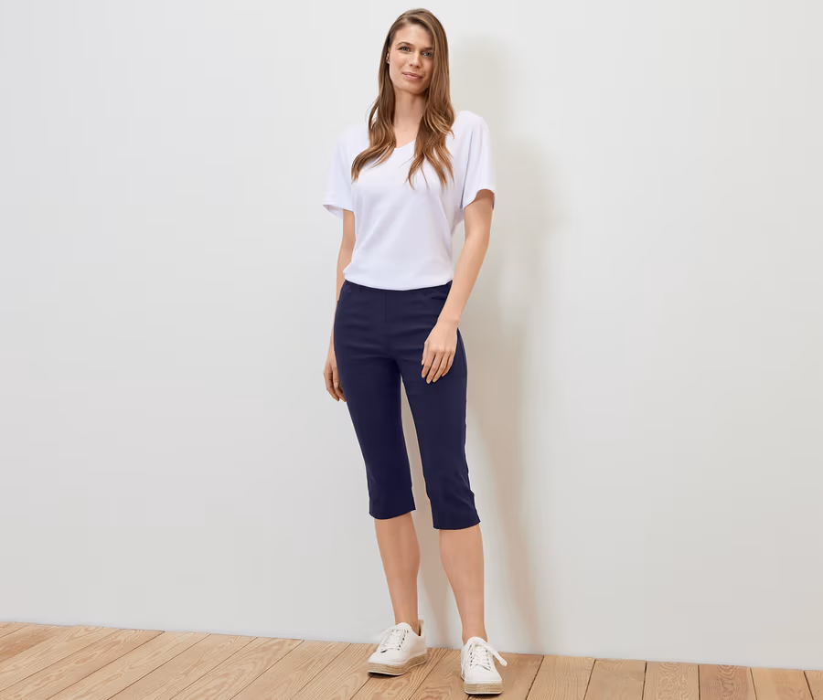 - Elastischer Bund mit Gürtelschlaufen – kein Einschnüren