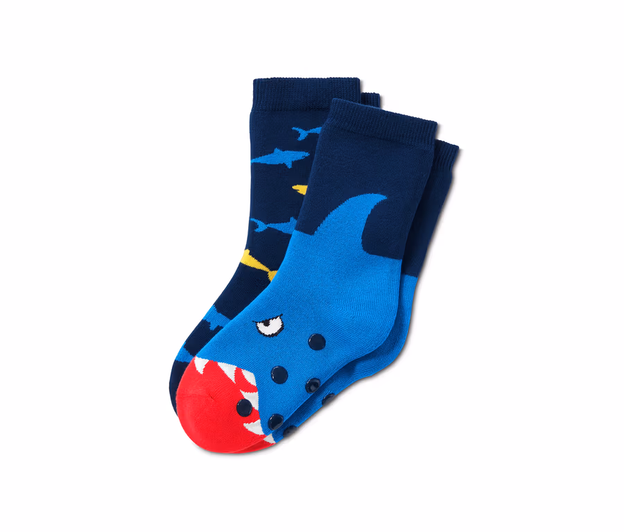 Mit den Haussocken für Kinder stehen diese wortwörtlich mit beiden Beinen fest im Leben. Denn die Kindersocken kommen mit Antirutsch-Noppen, die für einen sicheren Gang in den eigenen vier Wänden oder bei Freunden sorgen. Damit die Kinderfüße sich vollends wohlfühlen, begeistern die Antirutsch-Socken mit weicher Frottier-Innenseite und Komfortbündchen, die ein Einschnüren verhindern. Die Verarbeitung von Bio-Baumwolle und Elasthan lassen die Socken für zu Hause außerdem mit Formbeständigkeit, perfektem Sitz und hohem Tragekomfort punkten.