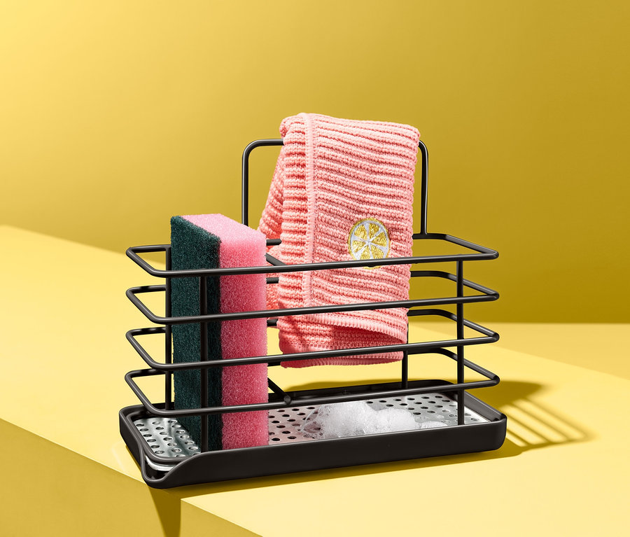 - Platzsparendes Aufbewahren von Spülbürste, Schwamm und Lappen