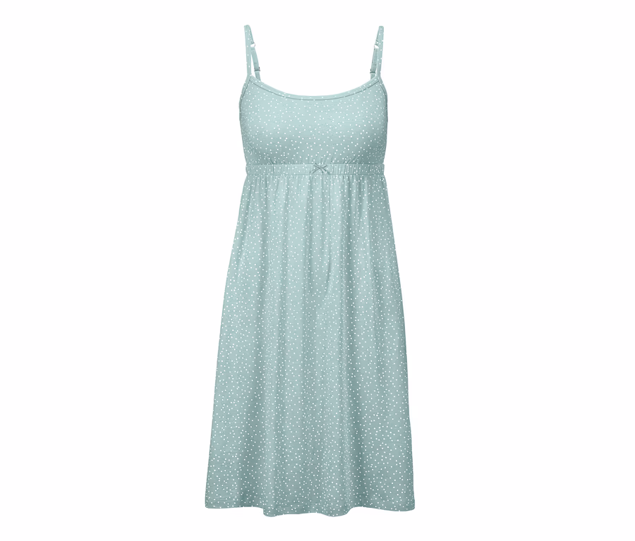 Der Stoff ist mit einem hohen Anteil an Bio-Baumwolle gefertigt und bleibt dank Elasthan lange in Form. Außerdem verleiht die Faser dem Nachthemd einen perfekten Sitz bei hohem Tragekomfort. Der Pünktchen-Alloverprint ist zeitlos schön und eine dekorative Wäscheschleife rundet den klassischen Look ab.