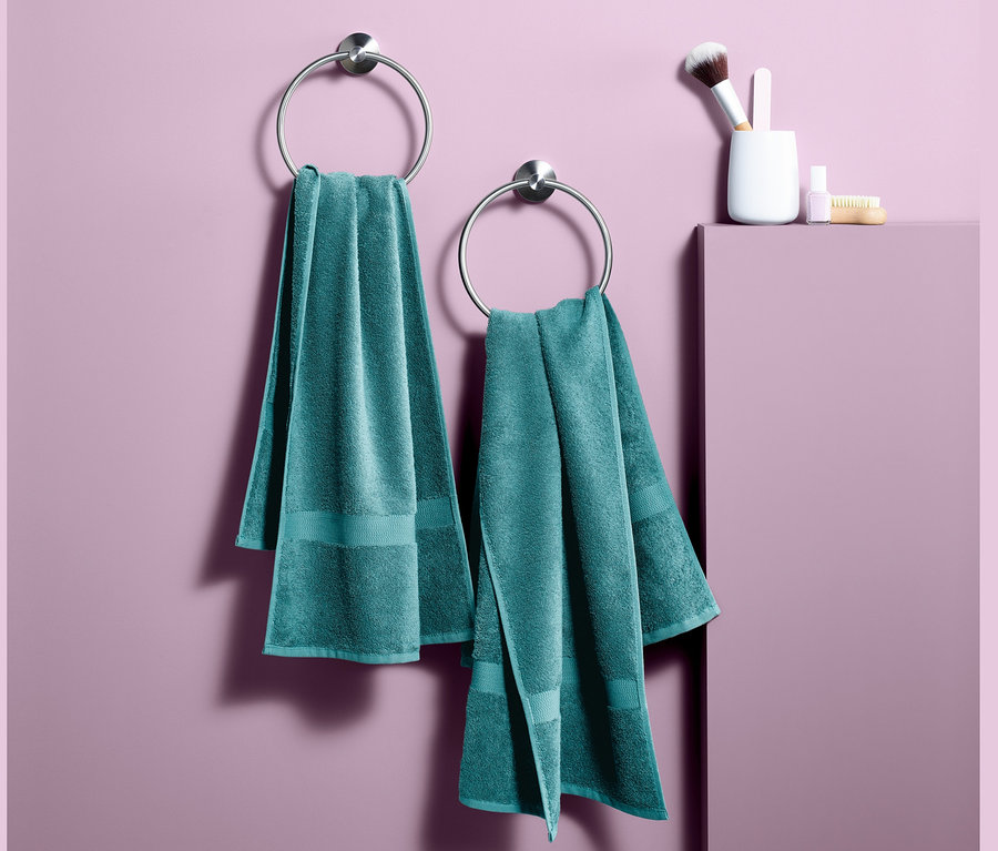 Zwei mal Extrakomfort im Badezimmer: Diese zwei besonders weichen und saugfähigen Frottier-Handtücher sind aus reiner Bio-Baumwolle gefertigt und machen die Zeit im Bad besonders angenehm. An der kurzen Seite haben sie beide einen Aufhänger und eine gewebte Borte sorgt für den klassisch-schicken Handtuch-Look.