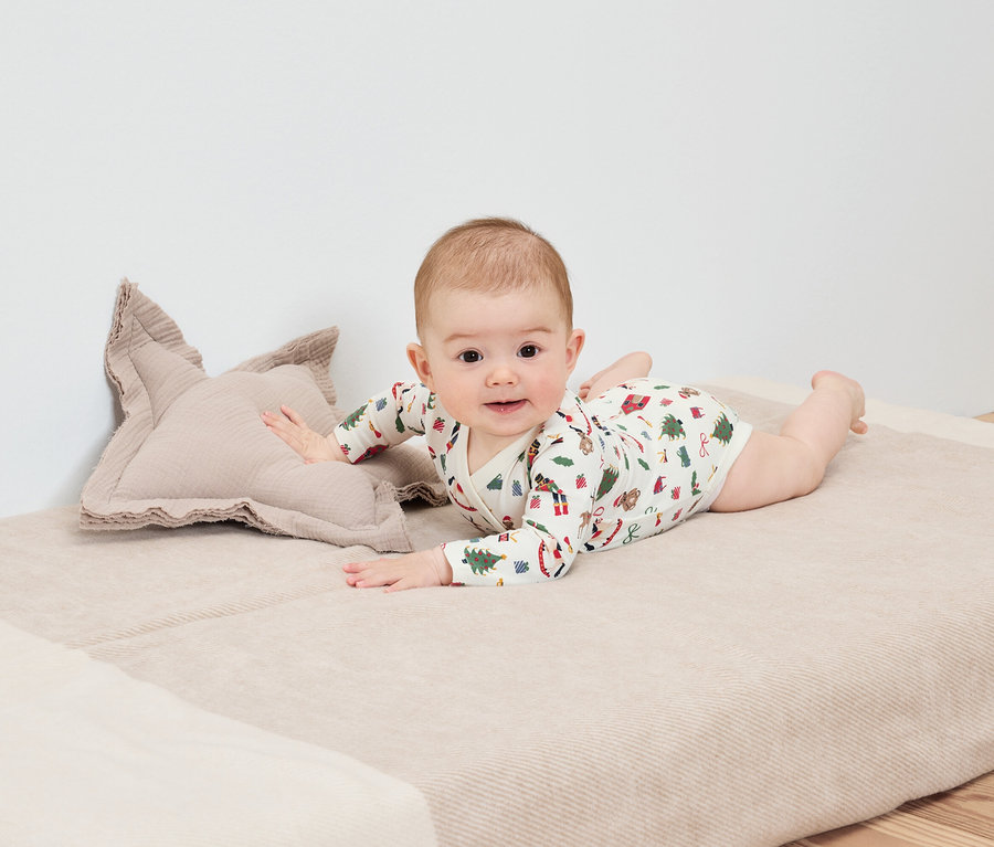 - Gr. 50/56 – 62/68 in Wickelform: komplett zu öffnen durch Druckknöpfe an der Seite und im Schritt