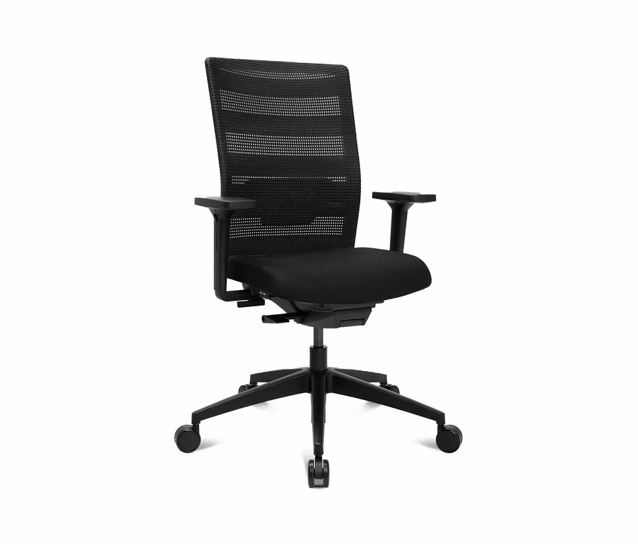 - Moderne Rückenlehne mit atmungsaktivem Netzbezug, inkl. höhenverstellbarer Lordosenstütze