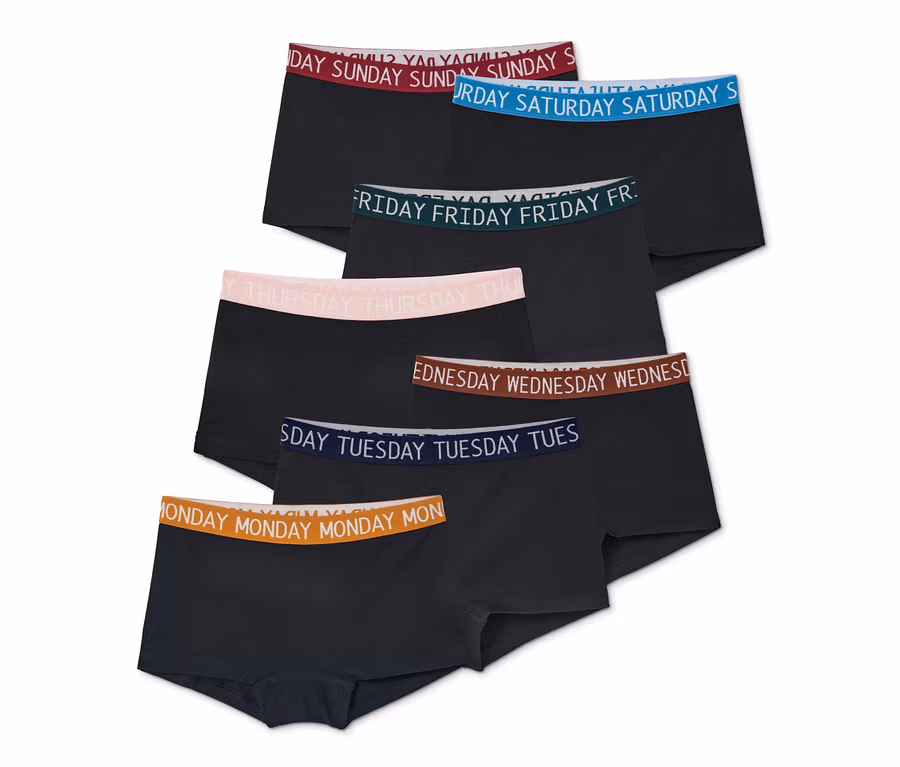 - Elastische Bündchen mit Wochentag-Schriftzug