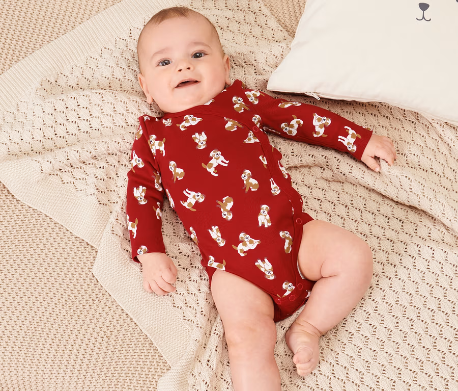 - Gr. 74/80 – 98/104 in Schlupfform: Druckknöpfe im Schritt zum einfachen An- und Ausziehen