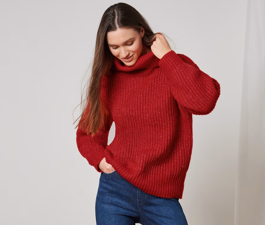 - Mit voluminösem Rollkragen