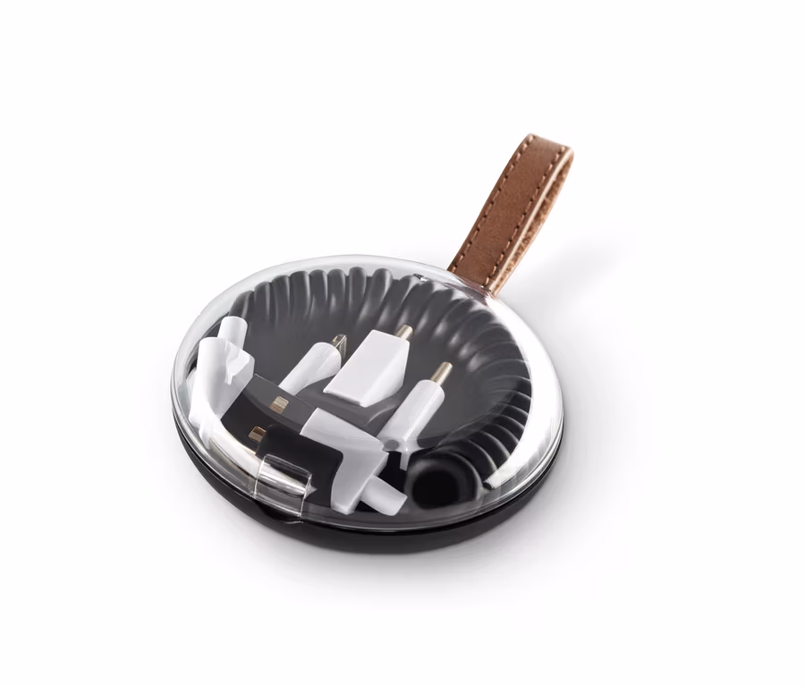 - Flexibles, platzsparendes Ladekabel mit austauschbaren Anschlüssen