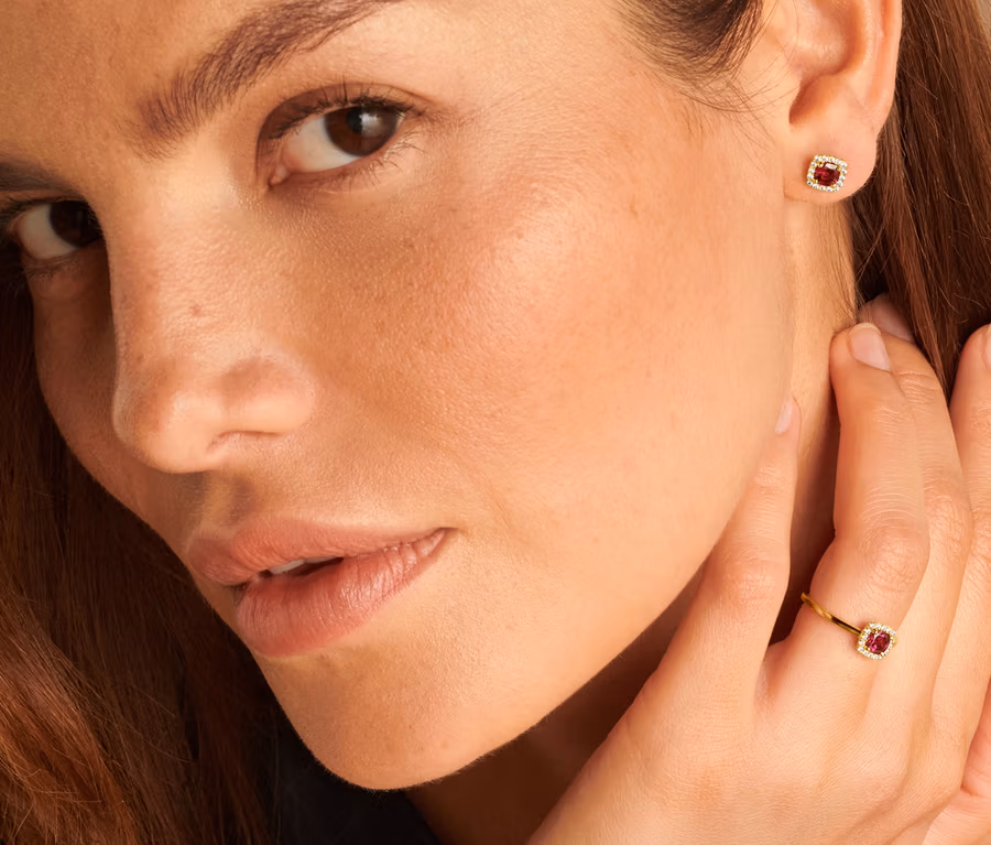585 Gold Ohrstecker Rhodolith und Zirkonia