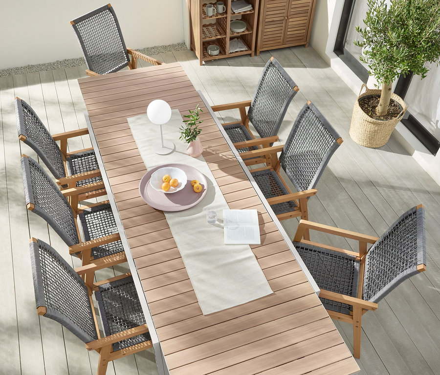 - Gestell aus FSC®-zertifiziertem Eukalyptusholz in Teakoptik, geölt