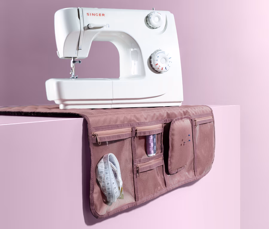 Außerdem bietet sie mit vier Reißverschlussfächern, einem offenen Staufach und einem Klett-Nadelkissen Platz für die gängigsten Utensilien, die man beim Nähen gerne griffbereit hat. Zum Transportieren oder Verstauen lässt sich die Unterlage platzsparend zusammenfalten.