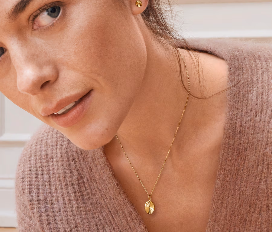Kette, 925 Silber vergoldet, mit Sonnenschliff-Anhänger