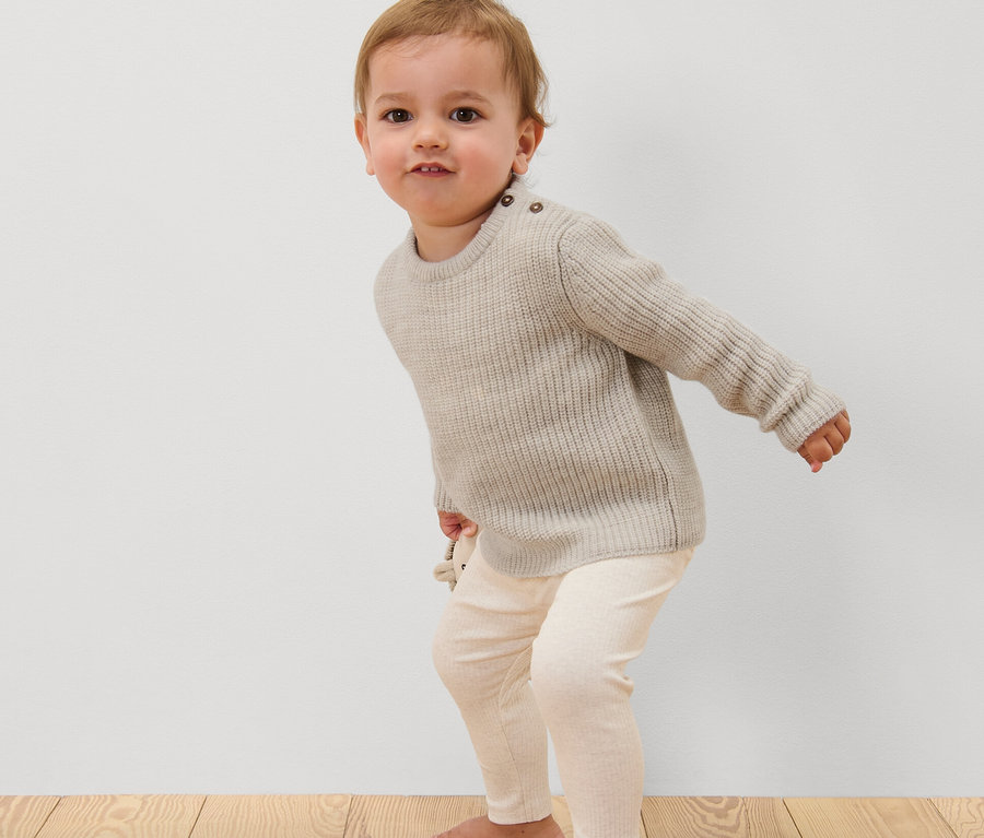 • Rippbündchen an Rundhalsausschnitt, Ärmeln und Saum