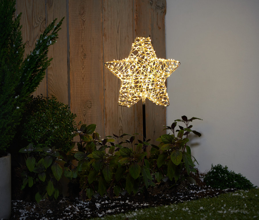 - Metallstern mit einer Vielzahl eng umwickelter LEDs für eine stimmungsvolle Beleuchtung