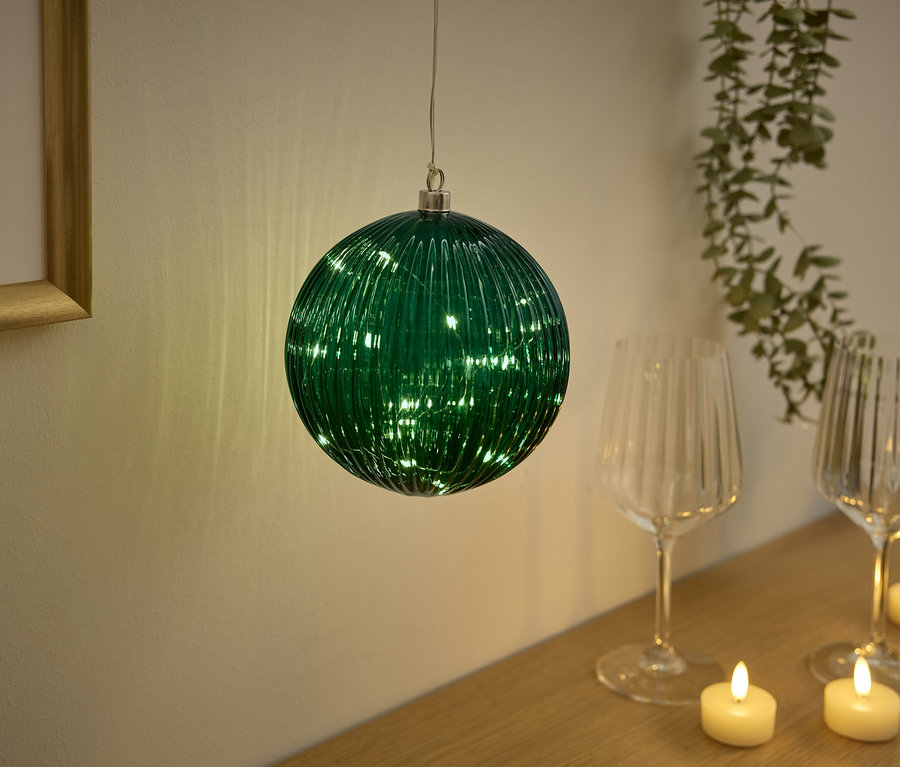 - Glaskugel grün mit matt goldfarbenem Element