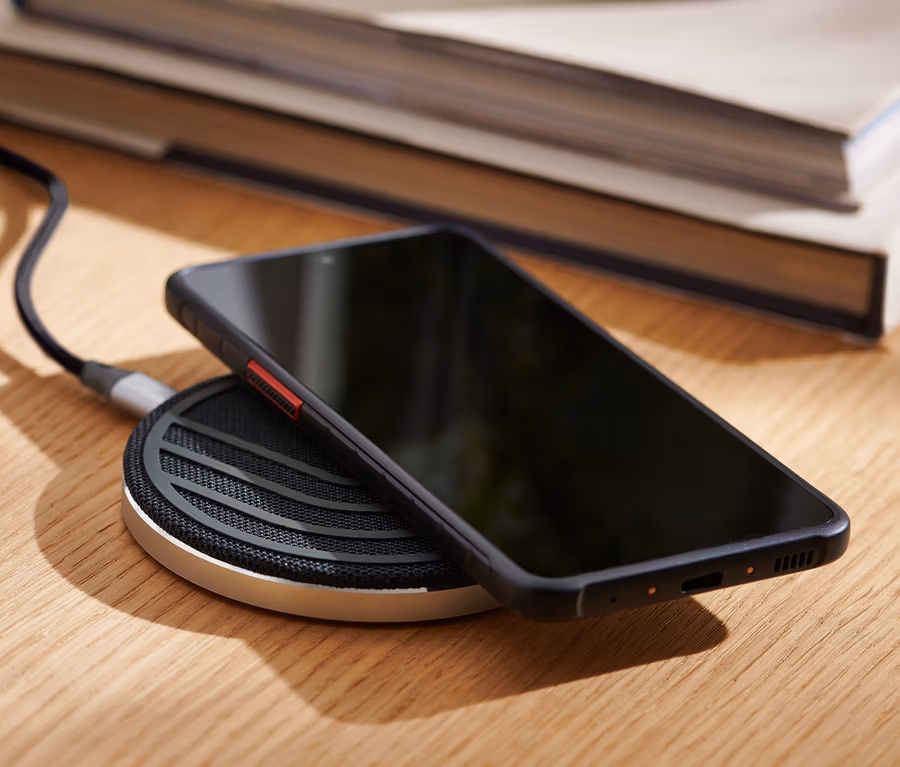 - Lädt kompatible Geräte durch Auflegen drahtlos auf
