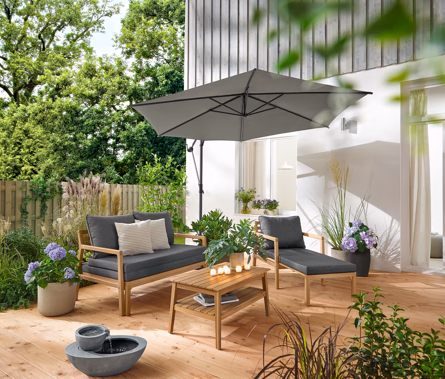 - Inkl. 1 Sitz- und 2 Rückenkissen, Bodenschonern, Montageanleitung und -material