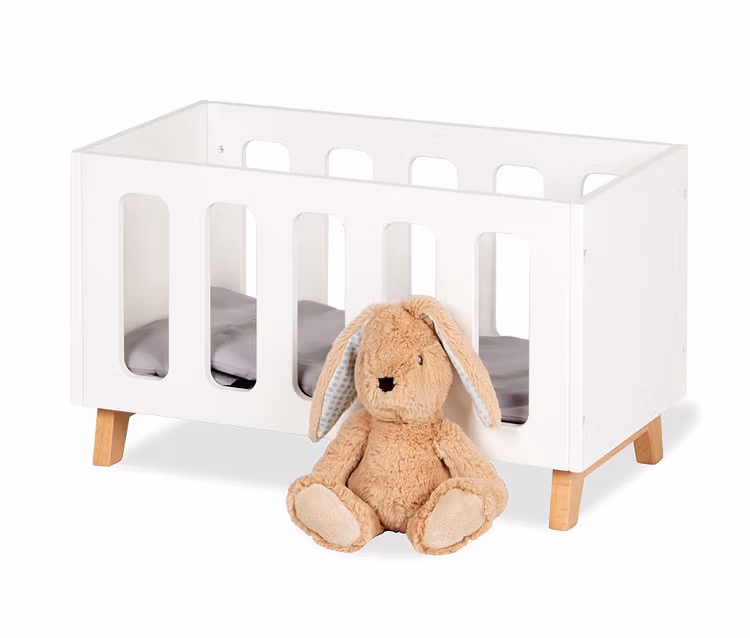 - Inkl. 1 Puppenbetts, 3-teiligen Bettzeugs und Aufbauanleitung