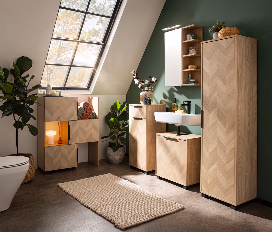- Waschbeckenunterschrank mit Tür im Fischgräten-Design