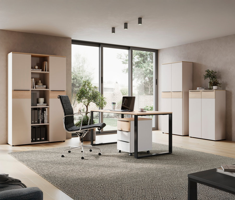 - Tischplatte Lindberg-Eiche-Nachbildung, Gestell schwarz