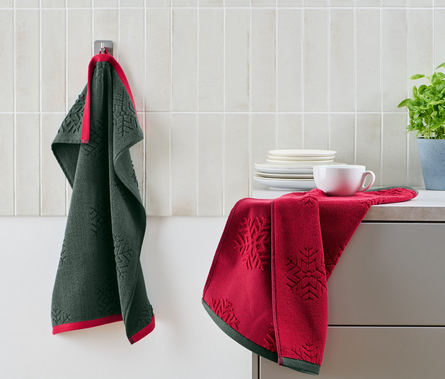 - 1x dunkelgrün mit Muster und dunkelroter Borte, 1x dunkelrot mit Muster und dunkelgrüner Borte