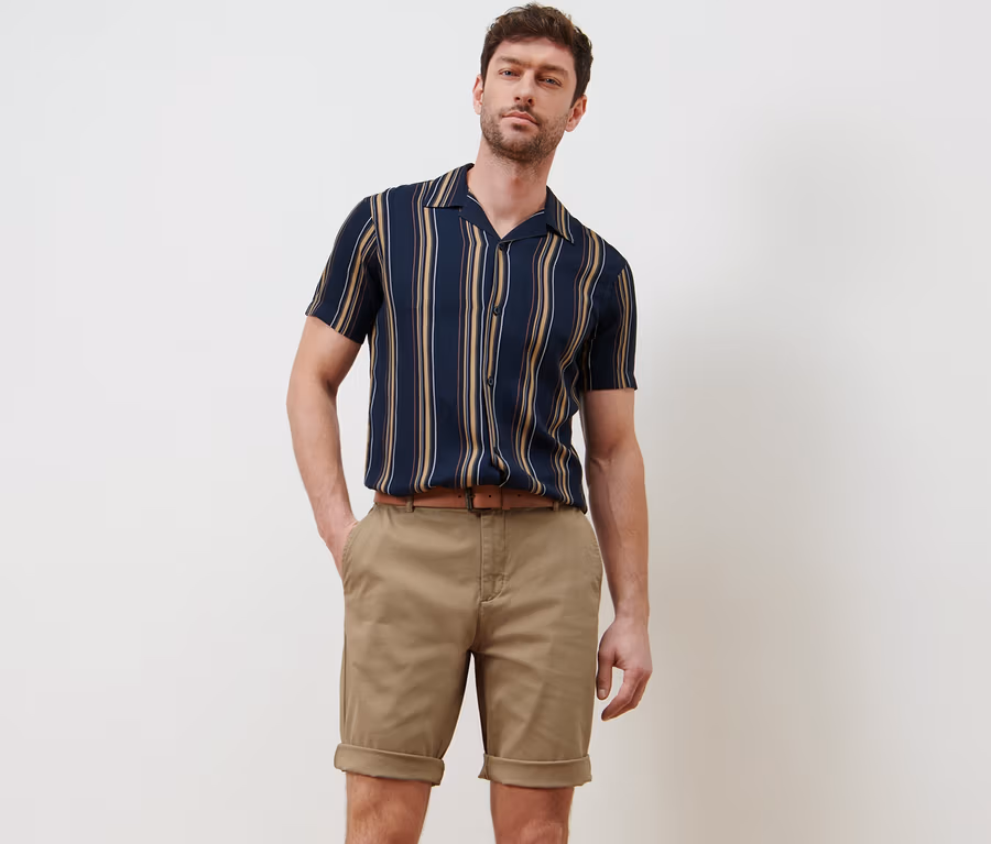 • Sommerliche Baumwoll-Stretch-Qualität mit angenehm glatten Griff