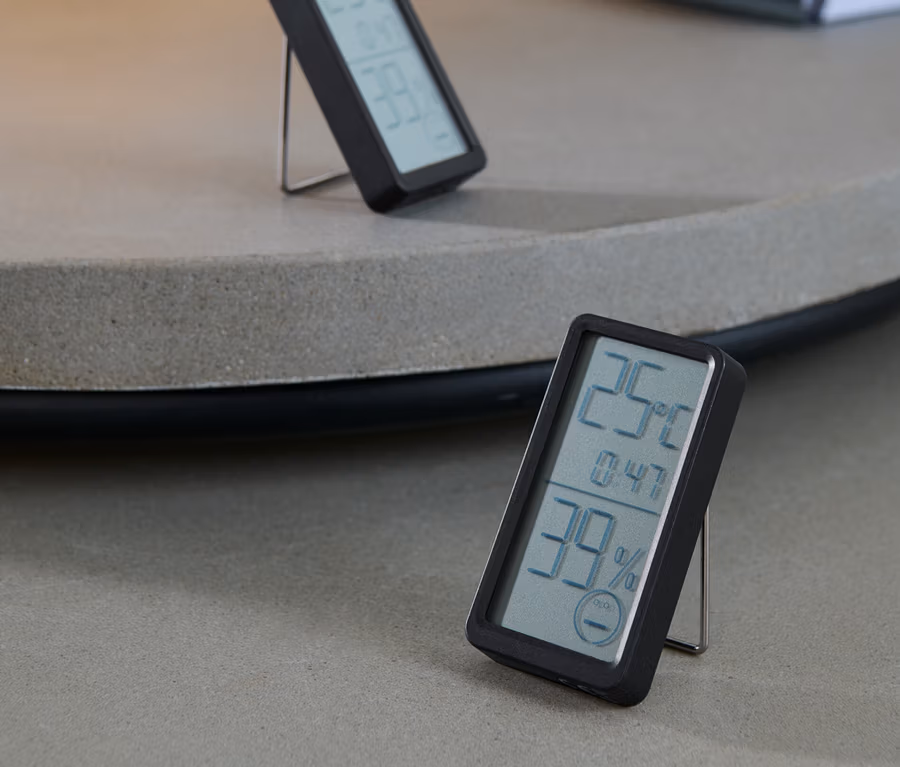 • Zeigt Temperatur, Luftfeuchtigkeit und Uhrzeit