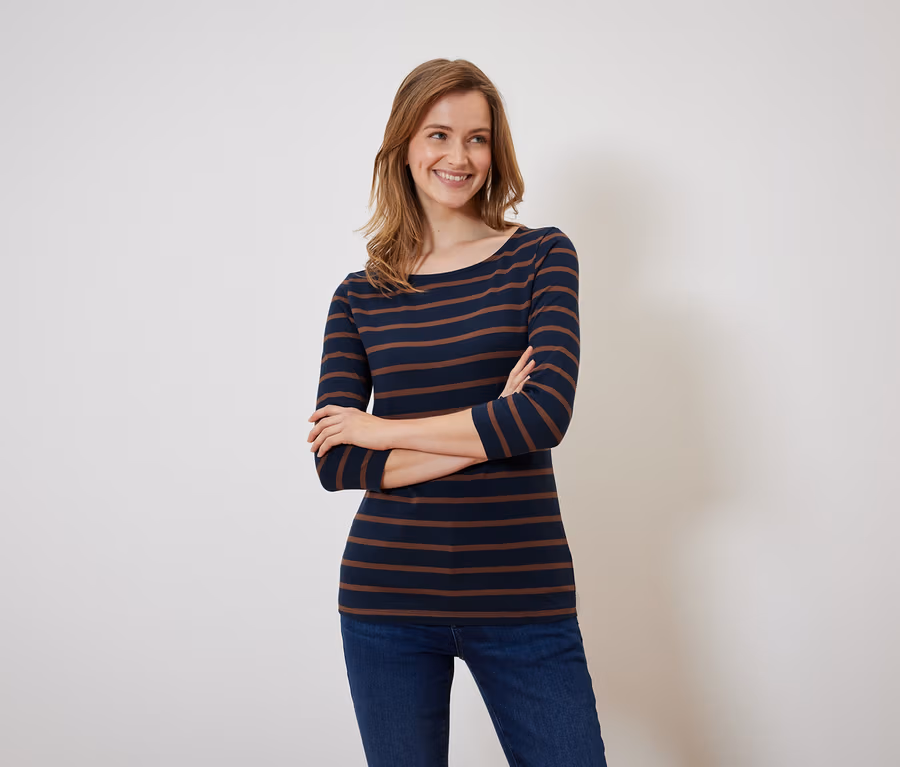 Gestreiftes Shirt mit 3/4-Arm, navy-cognac