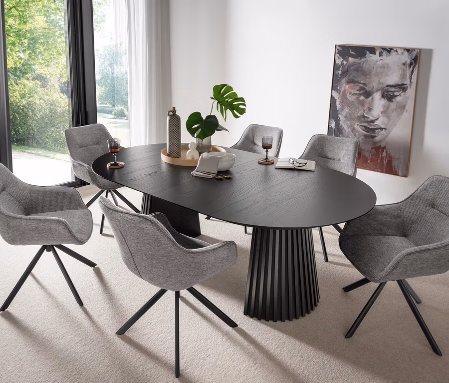 - Erweiterbarer Diningtisch mit Gestell in Lamellenoptik