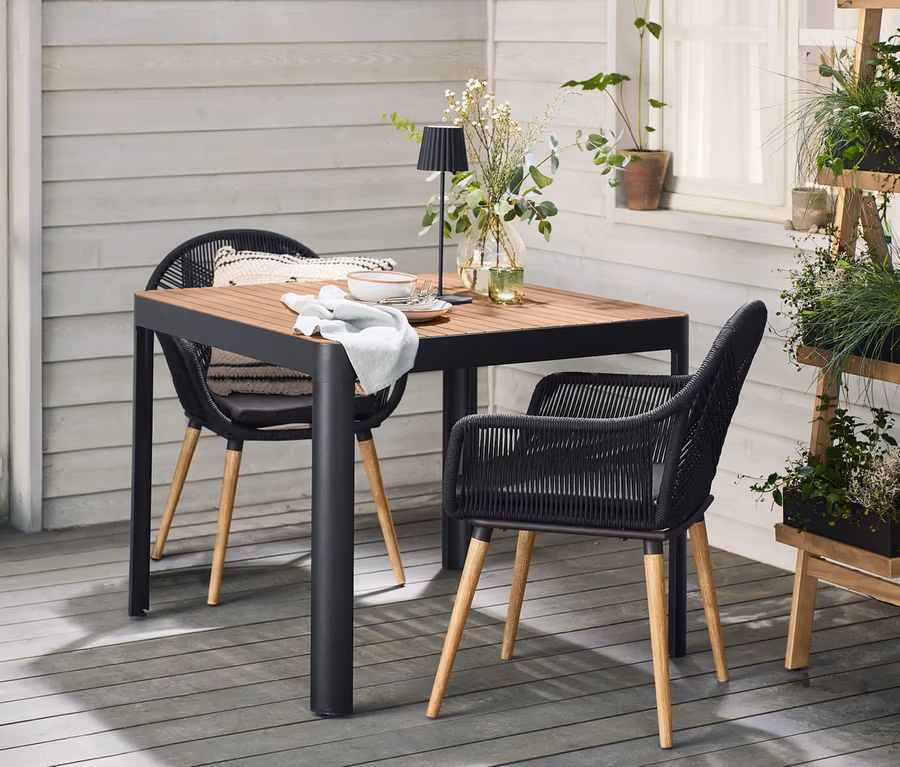 • Stuhlbeine aus FSC®-zertifiziertem Eukalyptusholz in Teakoptik