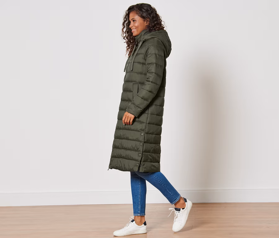 Steppmantel mit Kapuze, olivgrün