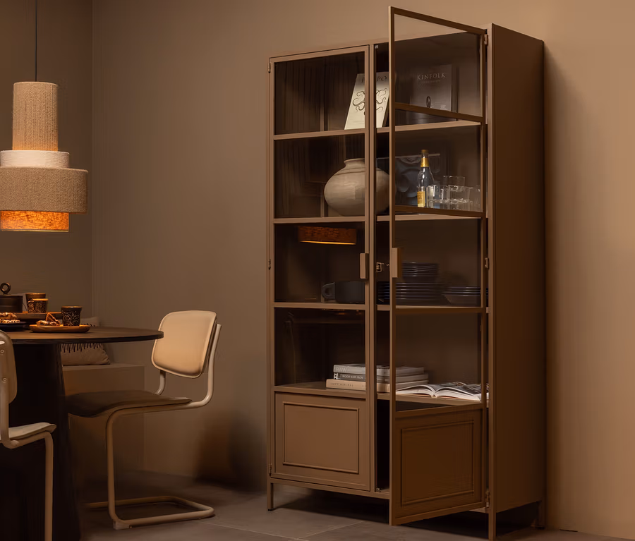 - Viel Stauraum hinter teilweise transparente Vitrinentüren