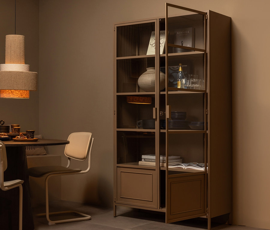 • Viel Stauraum hinter teilweise transparente Vitrinentüren