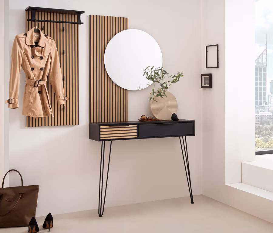 - Linke Schublade in Akustikplattenoptik