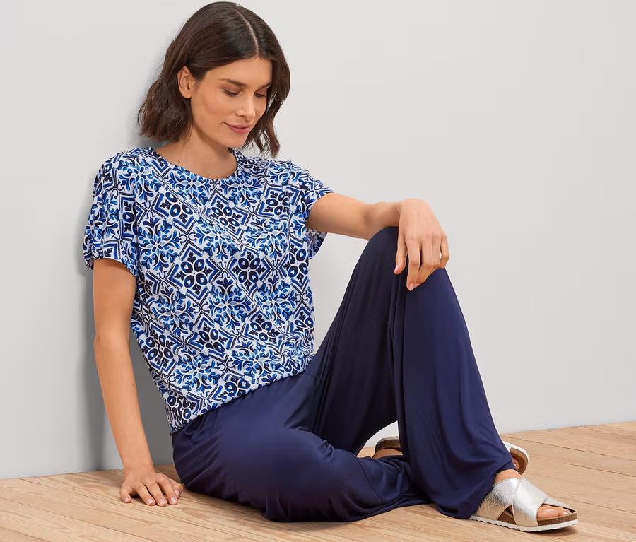 Bedrucktes Blusenshirt, blau