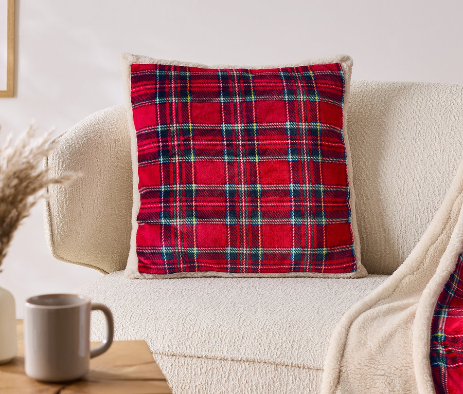 Kariertes Plüsch-Dekokissen