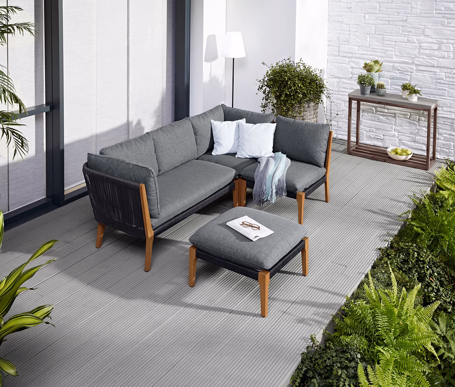 - Ideal mit anderen Elementen der Loungemöbel-Serie zu kombinieren – z.B. mit Hocker als Liege oder mit Ecke als Chaiselongue