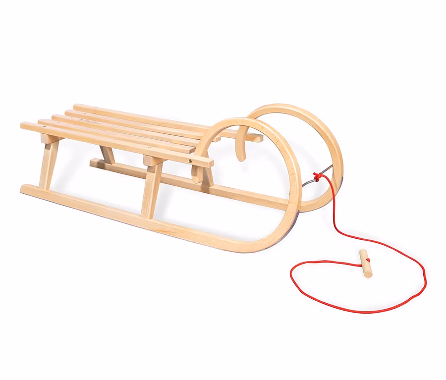 - Geringes Gewicht – komfortabel zu transportierender Holzschlitten