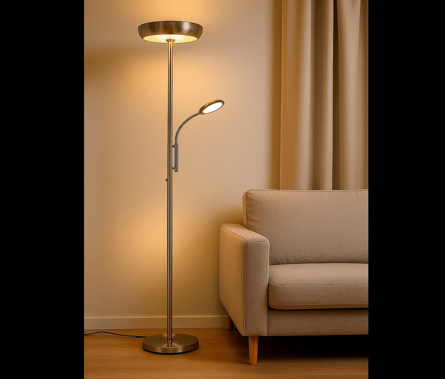 - Dimmbare Fluterleuchte mit Lesearm und Fernbedienung