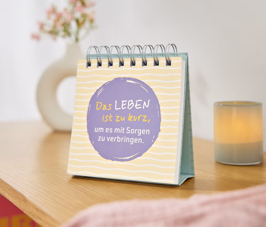 • Stabiler Aufsteller in kleinem Format mit 108 liebevoll gestalteten Seiten in Spiralbindung