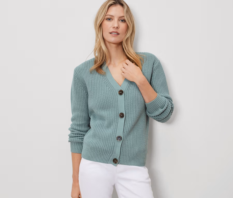 - Strickjacke mit leicht überschnittenen Schultern