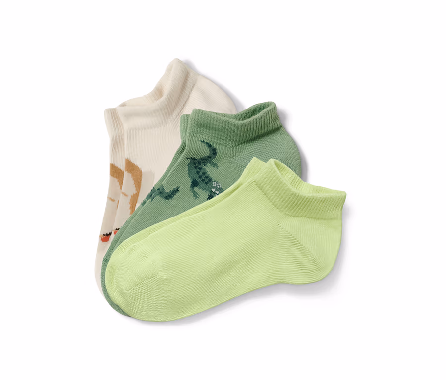 - 1x beige mit Affen-Einstrick, 1x grün mit Krokodil-Einstrick, 1x limettengrün