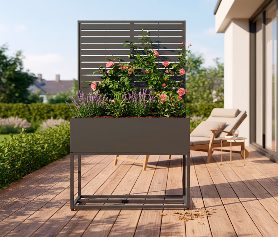 • Multifunktionales Design: Konstruktion als Rankgitter und Sichtschutz nutzbar