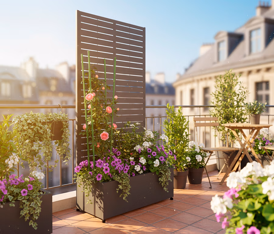 • Pflanzkasten mit Sichtschutz-Rankgitter