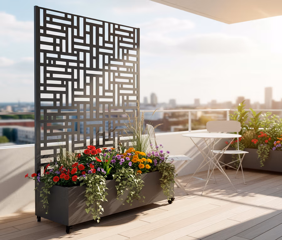 - Multifunktionales Design: Konstruktion als Rankgitter und Sichtschutz nutzbar
